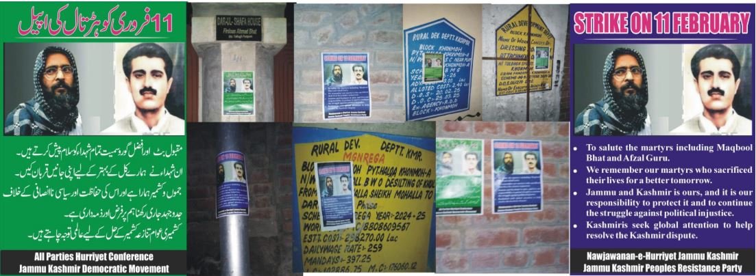 Srinagar: Posters have surfaced in various areas of Indian illegally occupied Jammu and Kashmir, calling on people to observe a complete shutdown on February 11 to mark the martyrdom anniversary of prominent Kashmiri leader Muhammad Maqbool Butt.