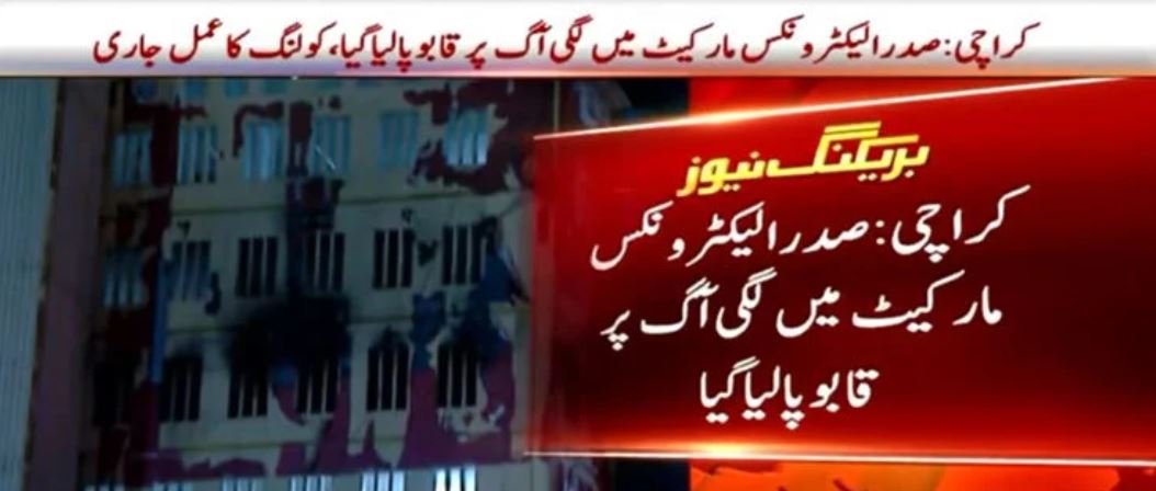 Earlier, a fire erupted at the Al-Najeebi electronics market in the Saddar area of Karachi, on Monday night.